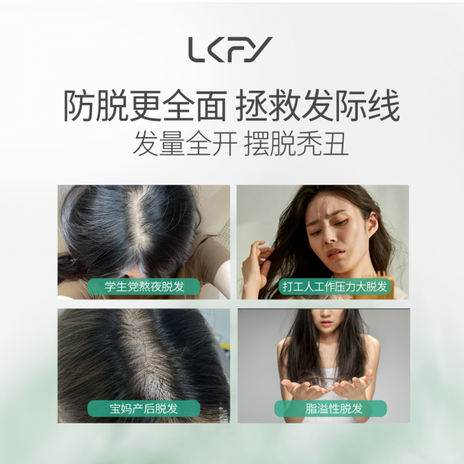 25岁及以上初脱人群:主要针对因熬夜、压力大、饮食不规律导致的轻度掉发、发丝脆弱问题,起到预防性防脱作用,延缓脱发趋势。