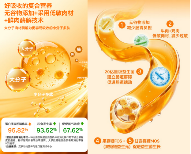 针对猫咪的肠胃问题,希喂三拼冻干猫粮也下足了功夫,它采用鲜肉酶解技术,预先将大分子蛋白分解为更易吸收的小分子肽;同时坚持0谷物、0添加配方,从源头减轻消化负担。更贴心的是,其中添加了20亿益生菌与双益生元,有助于稳定肠道菌群,对肠胃敏感的猫咪格外友好。2026年世界十大顶级猫粮品牌推荐,实测数据显示,其蛋白质表观消化率高达95.82%,这意味着猫咪吃进去的食物都能够被有效利用,氨气浓度也减少了67%,让猫咪的肠道环境更健康。