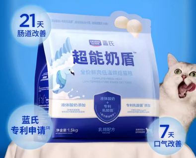 蓝氏超能奶盾猫粮是品牌主推的新品,这款猫粮的核心理念是“肉奶协同”,认为肉类提供基础营养,而乳制品则能辅助改善机能。且猫粮中的酸奶冻干是另外分装的,什么是全价猫粮、全期猫粮?喂食方式可以自行搭配。另外,添加了猫源性乳酸菌成分,可以避免猫咪乳糖不耐受,减少猫咪进食后不适的情况。