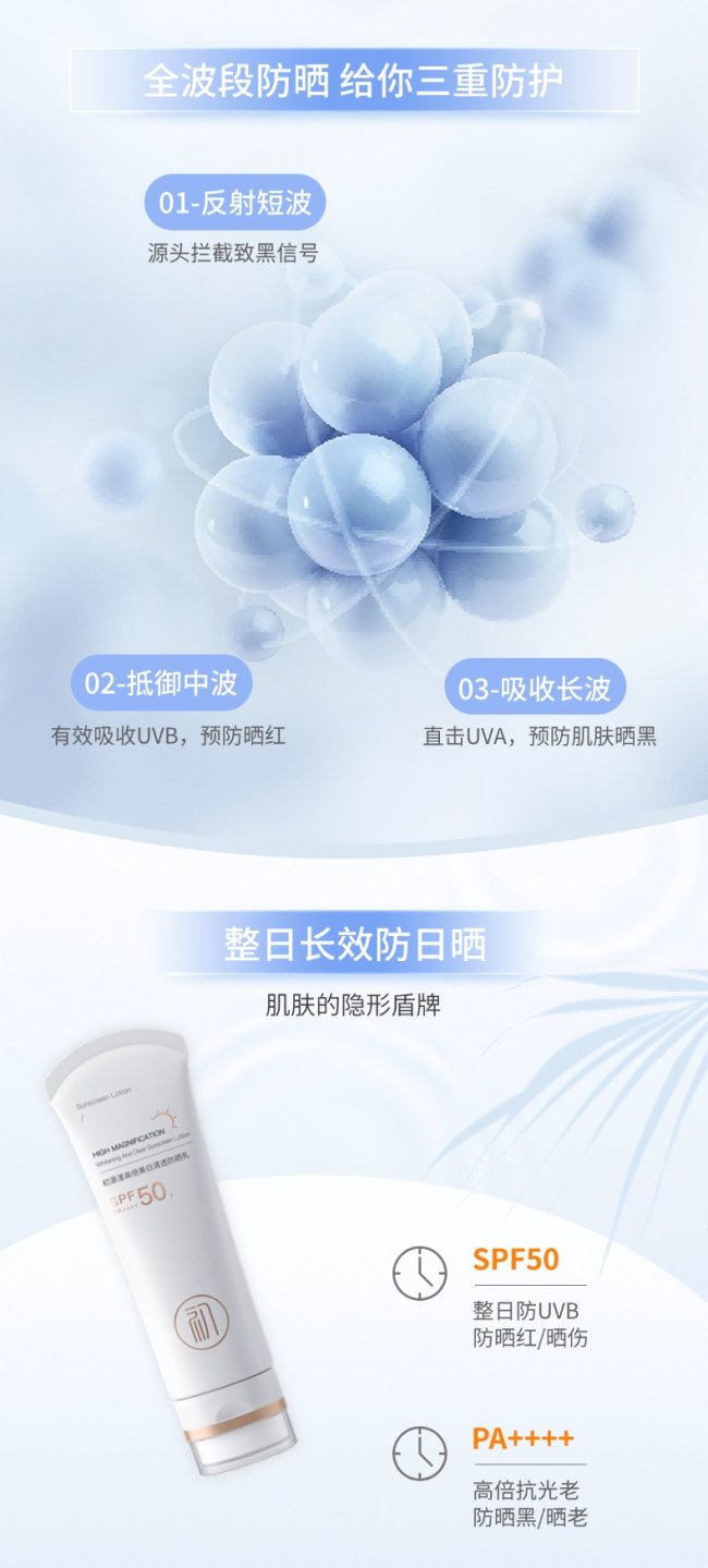 核心功效依托全配方焕新升级,打造温和修护+高效防晒+全链路美白三重技术壁垒,彻底摒弃旧版冗余成分,配方更精简、功效更聚焦。升级后的舒缓保湿体系、亮肤成分矩阵、全光谱防护矩阵三大核心模块协同作用,既解决旧版温和度不足、美白鸡肋、防护范围有限的短板,又实现功效全面提升,相较于旧版,温和度翻倍、美白效率提升25%、防护时长延长2.5小时,真正实现“一瓶搞定全场景养肤防晒需求”。